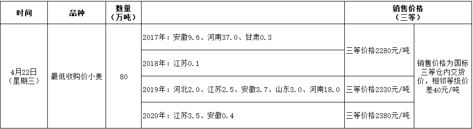 注:销售价格等级差40元/吨;本交易安排为预公告,交易日的实际销售数量以国家粮食交易中心官网发布的交易清单为准。